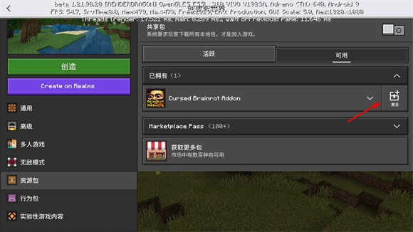 2、在右侧的可用列表中点击对应图标,依次激活资源包和行为包。