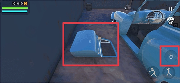 1、在游戏中玩家需要先将汽车上的所有零件装备在车上,点击手掌按钮拾取