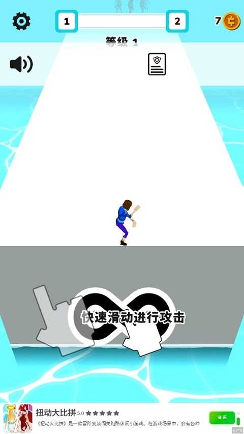 1、如图所示,你可以通过快速滑动或朝任意方向拖动来控制游戏角色的移动;在挑战场景中,前方会出现数量不一的敌人,此时只需朝敌方方向滑动手指让角色移动过去,松开手指就能发起攻击。