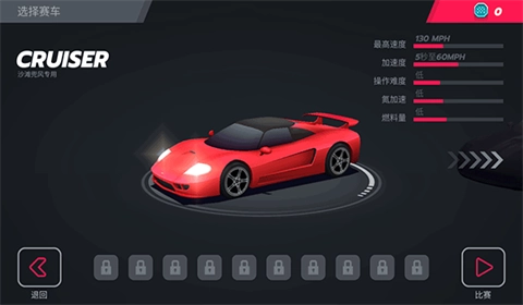 3、通过不断积累游戏内的奖励,解锁性能更出色的赛车,以此增强自身的竞争力。