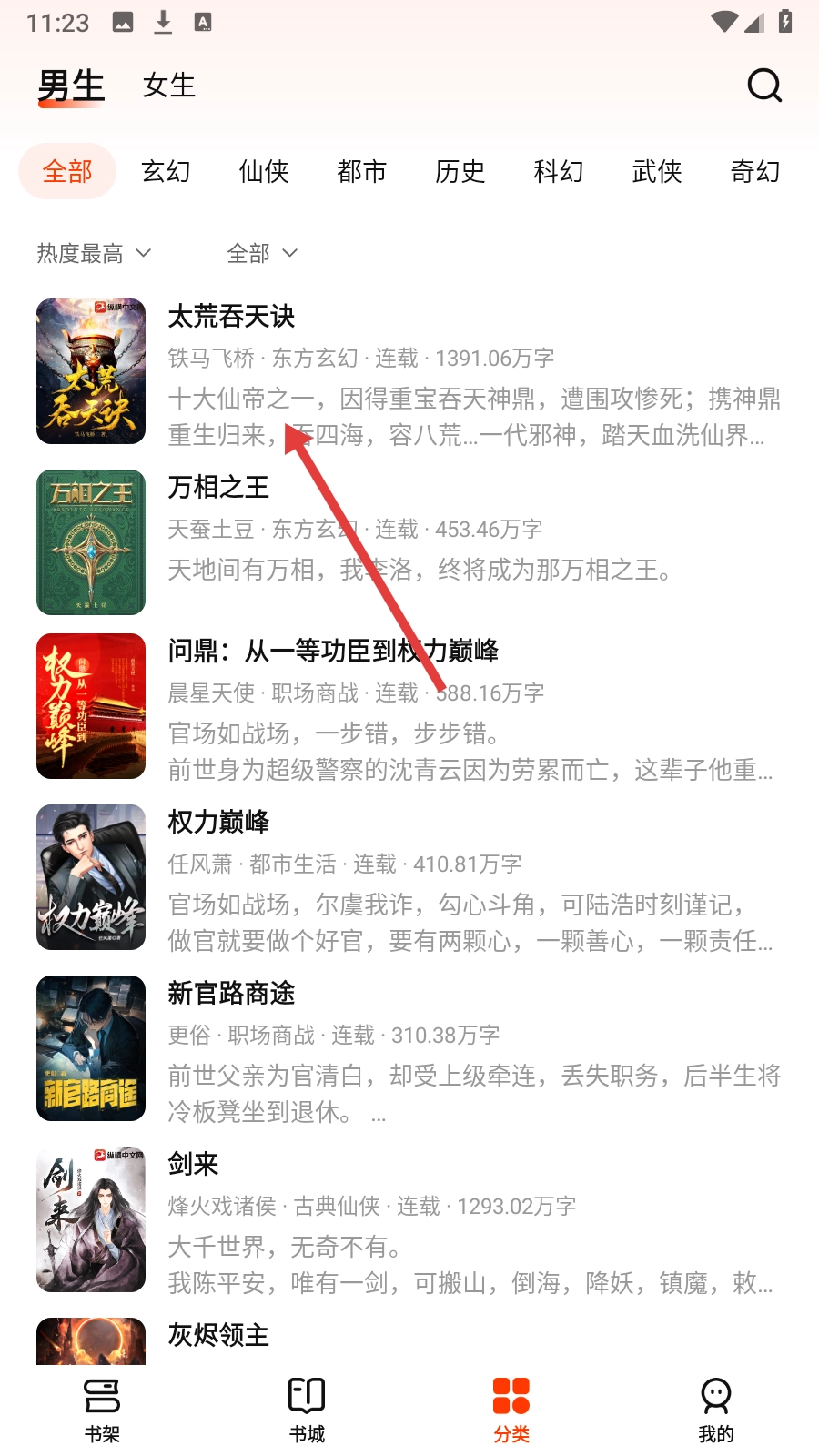 2、分类页选择【喜欢的书籍】,进入书籍详情页。