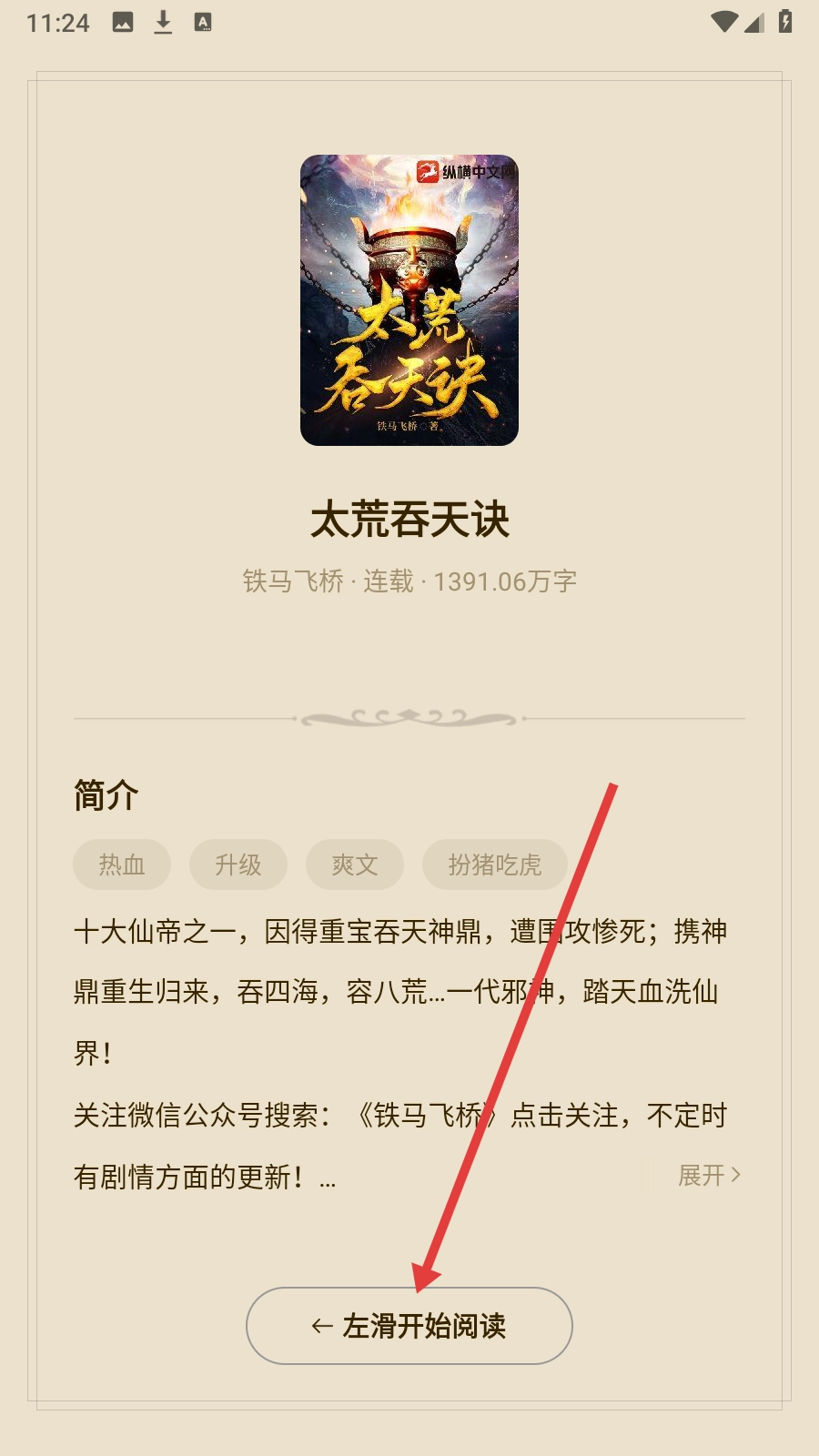 3、详情页点击【左滑开始阅读】,进入正文阅读。