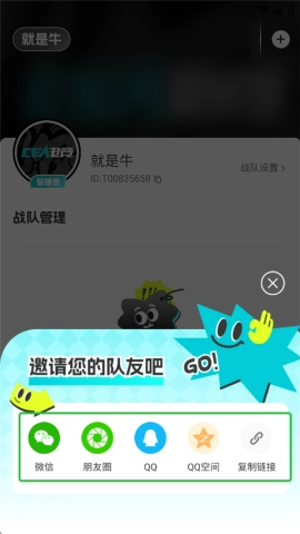 7、选择通过微信或QQ发送邀请链接,让你的好友轻松加入战队,拯救你的电竞梦想!