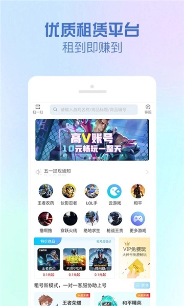 提供了账号可供租借覆盖各类手游端游及影视会员账号;