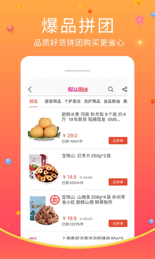 更多优质好货均支持拼团下单,让你省心购物,随时都能开启拼团下单之旅。