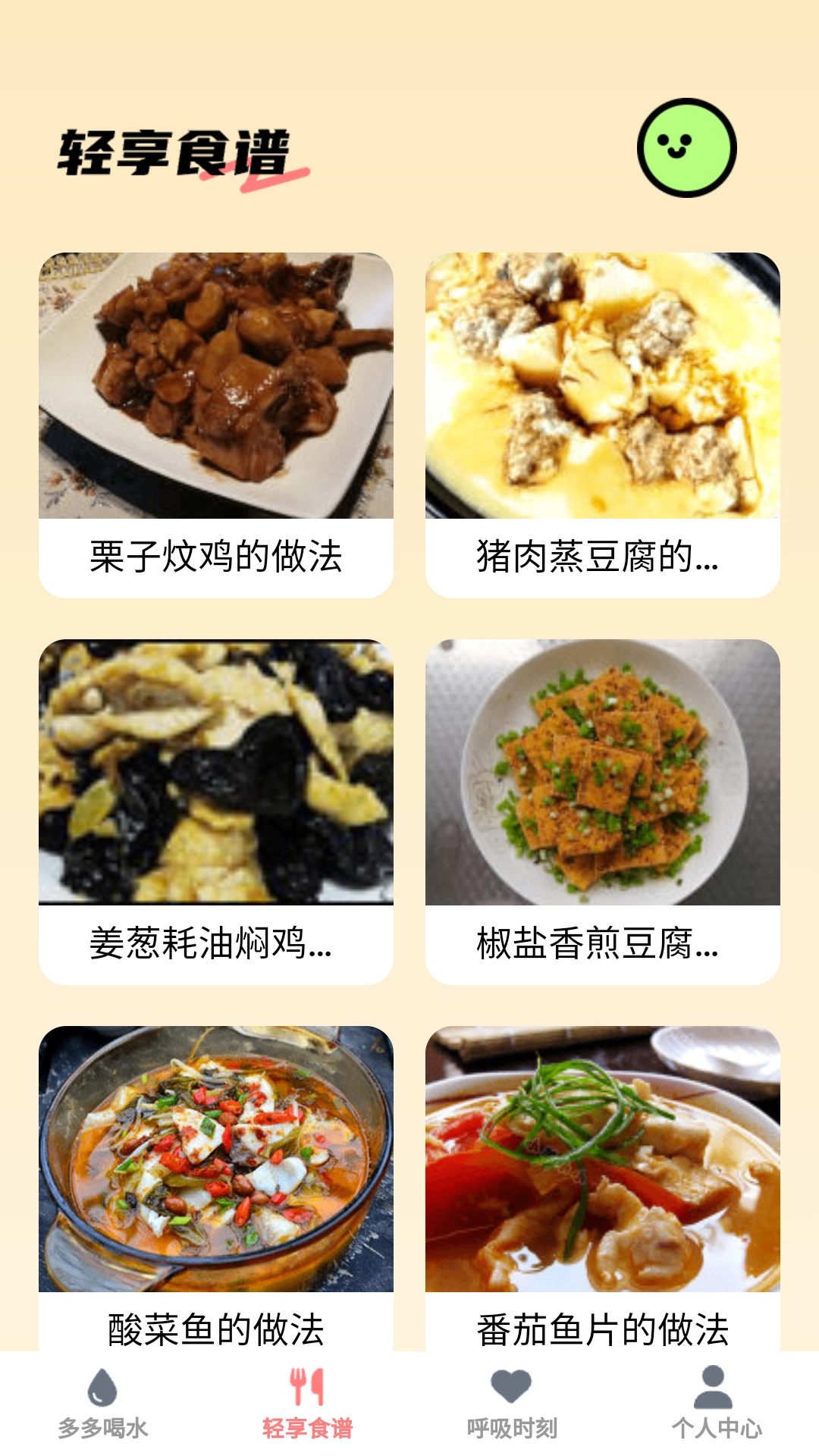 3、打开【轻享食谱】界面,浏览选择心仪的食谱。