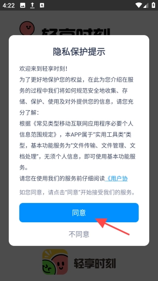 1. 下载并安装完成后,阅读并同意“隐私保护提示”。
