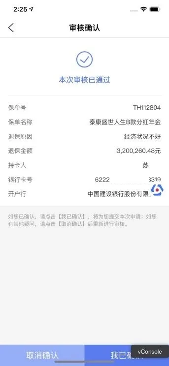 若您保单的退费金额超过50万,将会启动人工视频审核流程,届时会有工作人员为您核实并确认相关信息。