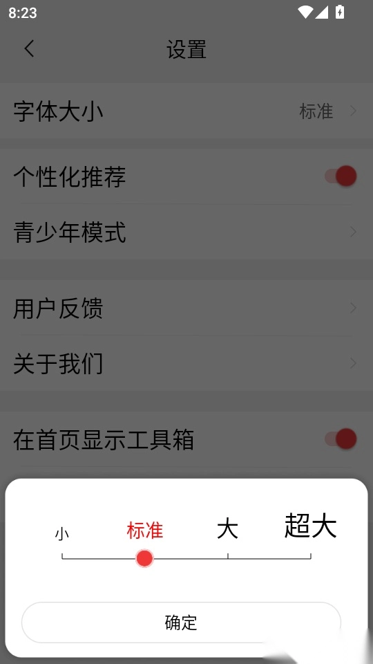 4.如此用户通过滑动方式,就可以将字体大小调制超大了