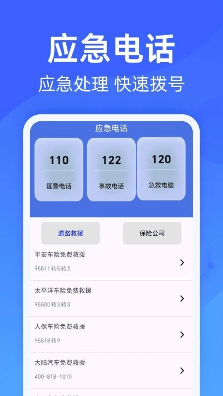 同时配备各类道路救援应急电话,用户能便捷查看所需号码,并轻松拨号实施应急处理。