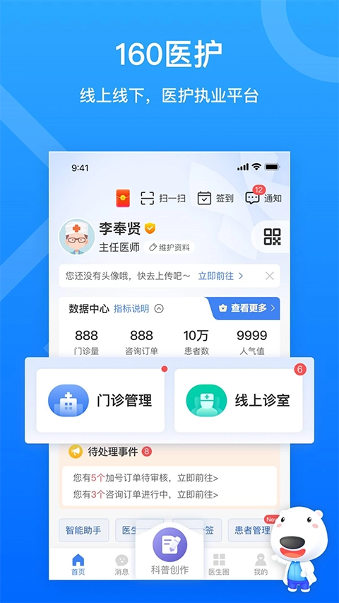 160医护APP是一款面向医生的执业看诊软件。它借助移动医疗这一创新形式来处理看诊事宜,有效改善了传统医疗服务模式中的诸多弊端,让病人能够更迅速地就诊。凭借软件的在线预约管理功能,医生能够灵活安排自己的工作时间,更及时精准地为有需求的患者提供医疗服务。此外,软件还新增了患者点评环节,医生可据此判断治疗效果,制定跟踪治疗方案,这极大地提高了工作效率与满意度。