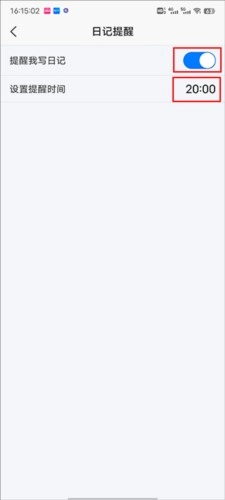 4、打开【提醒我写日记】按钮,还可以自由设置提醒时间。