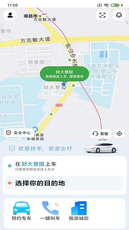 1、在线下载并打开优客出行APP,完成注册登录可随时打开叫车出行;