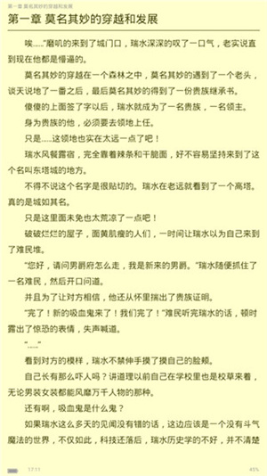 十、快速缓存本地,离线浏览方便和舒适十一、简单的章节阅读体验,自动翻页设置、字体大小、自定义颜色匹配、可以说我们现在使用的软件真正的做到个人定制阅读器