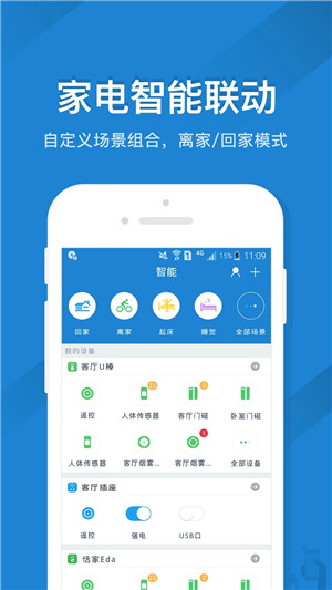 在场景界面,用户可长按场景图标下方文字(如“客厅”、“卧室”、“书房”)