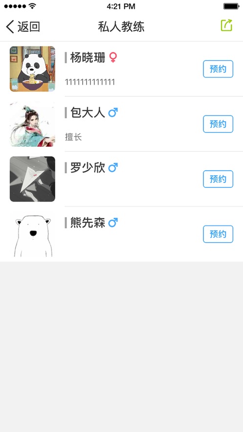 1. 板块内容设置极为丰富,其中包含各类不同的私人教练,支持在线预约。
