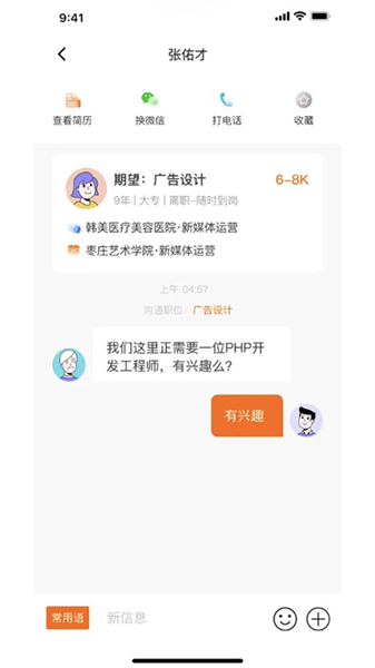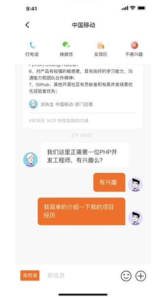 4、可随时在线进行求职沟通,寻觅心仪工作,随时开启求职之旅,实现智能匹配。
