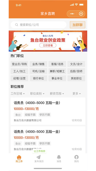家乡直聘,一款功能完备的求职招聘软件,岗位信息丰富多样。在这里,你能在线快速找到适配工作,满足个性化求职需求,更轻松地觅得心仪岗位。感兴趣的朋友,快来体验一番吧!