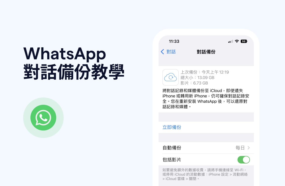 如果您选择手动备份,可以点击“备份”来立即备份聊天记录。