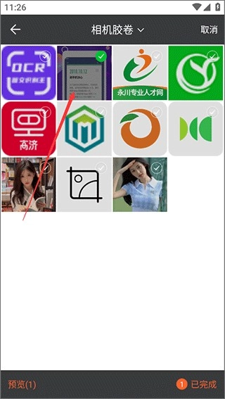 2.以图片识字功能为例,进入相册页选择需要识别的图片,选择完成后点击右下角的“已完成”即可