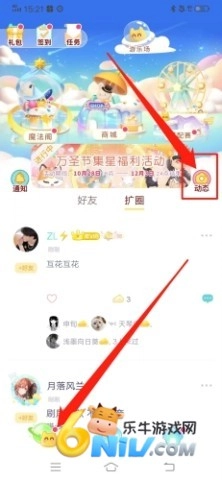 1、开启小芝士,第一步在左下角找出你熟知的小按钮,随后点击页面中间右侧的“动态”选项。