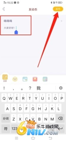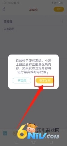 2、接下来在弹出的界面中,输入你的帖子标题和内容,完成后点击右上角的“发布”按钮;