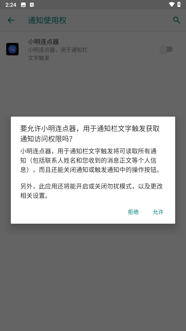 2)退出后台后悬浮球被关闭:打开手机管家,找到小明连点器一一允许悬浮球权限(如果已经开启,先关闭再打开一次);