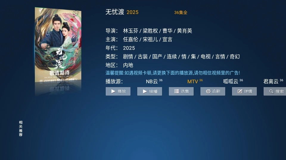2、接着任意播放一部剧集内容,这里小编以“无忧渡”为例。