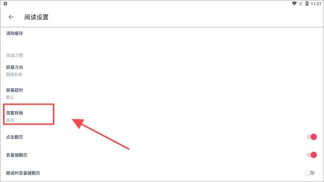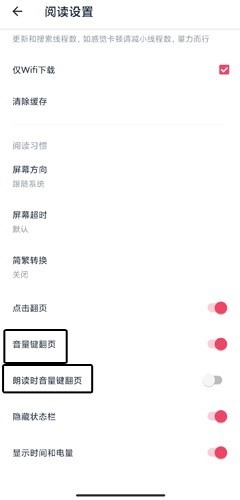 2、在阅读设置页面中可以设置音量键翻页、朗读时音量键翻页。