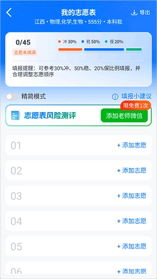 一键添加,实现志愿表科学管理