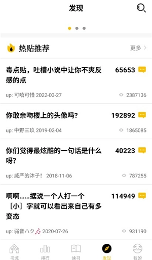 4、发现栏目热推云集,搜索热门神贴一起吐槽热聊