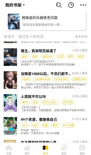 3、没有读完的书会自动转存我的书架,还能够查看每本书有多少人读过,从中筛选好书