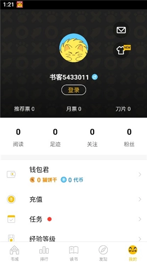 1、先安装刺猬猫应用,安装完成后打开该应用,进而进入个人界面。