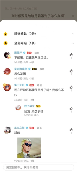1、很多小伙伴发现有用户在间贴里发图片与表情包,但是自己却发不了