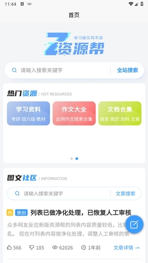 1. 来到首页后,能够直接输入关键词,对心仪的资源进行检索。