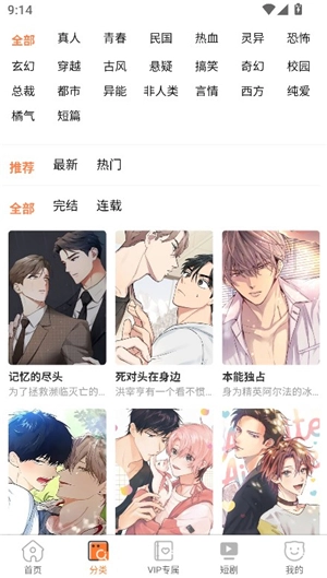 3、能在分类中设置标签,筛选喜欢阅读的漫画类型