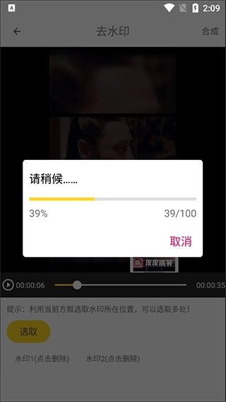 3、把方框拖到水印所处位置,点击进行选取。要是存在多处水印,能够多次选取。完成选取后,点击合成。