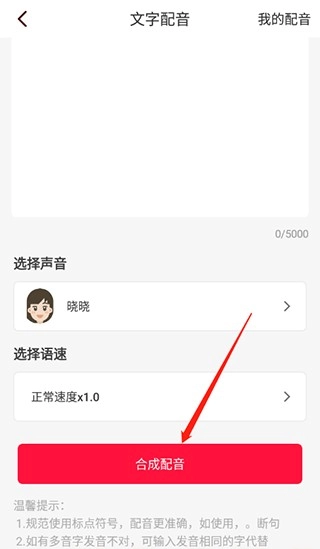 4、最后选择合适的语速,点击合成配音即可