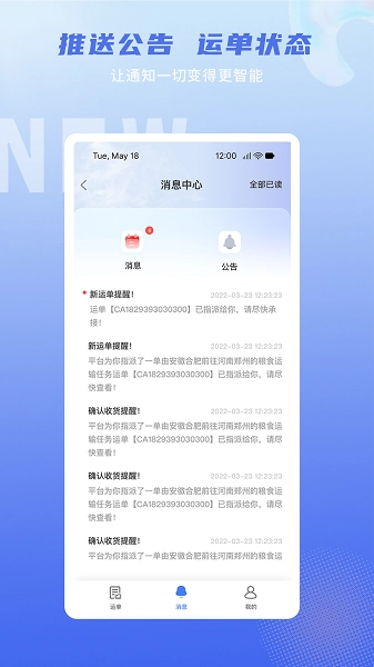 这是一款专为企业打造的软件,它构建了高效、安全且智能的新物流供应链平台。该软件支持用户在线开启运力共享的全新模式,在这里,海量的运力资源能便捷取用,丰富的订单可一键快速清单,方便用户轻松接单盈利。平台还提供大量优质货源资源,用户可在线实现高效运输,实时找货配货,轻松完成智能调度,更好地开展智能运输。另外,神通智运hi会在线提醒通知用户运单消息,用户能随时在线查看通知公告,实时掌握相关信息。