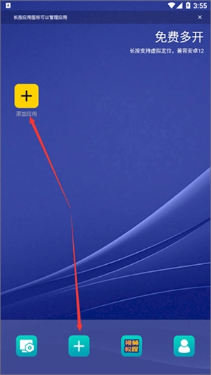 1. 开启虚拟双开王,进入软件后,点击“添加应用”,或者点击下方的“+”按钮,就能添加软件,达成多开效果。