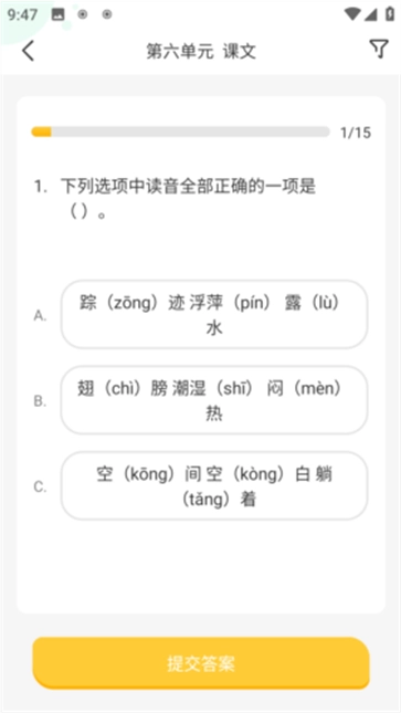 5、当您进入首页之后,点击“语文练习”等选项,就能开始学习啦。