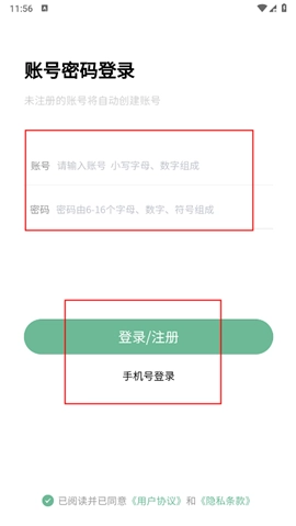1. 开启软件,执行账号登录操作,若为未注册的账号,系统将自动创建该账号。
