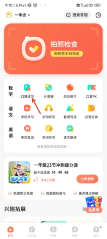 1、第一步,打开作业帮口算,接着点击首页里的【口算练习】。