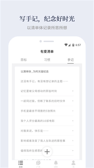 5、【写手记,铭记美好时光】采用清单体形式记录内心的思考与感悟。