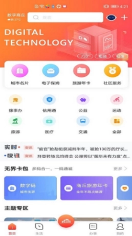 数字商丘作为一款智慧城市服务移动终端,涵盖商丘的各个领域。无论是新闻资讯、旅游胜地,还是医疗服务与政务办理等,用户都能借助该软件实现个性化定制,畅享当地商家的特色服务,堪称当地信息极为完备的移动门户网站。