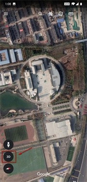 在查看某一地区的地图时,当镜头放大到足够近时左下角会出现3D标志,点击此标志可以实现该场景2D和3D间的相互转换;