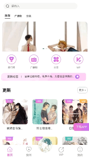 2. 在首页,用户能够看到排行榜、广播剧、分类等内容,这便于用户筛选出自己喜爱的有声资源。