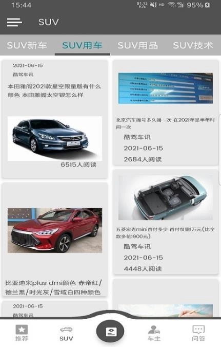 1. 在软件的车辆功能板块,向用户介绍了车辆在新车、用车、用品以及技术等方面的相关问题。