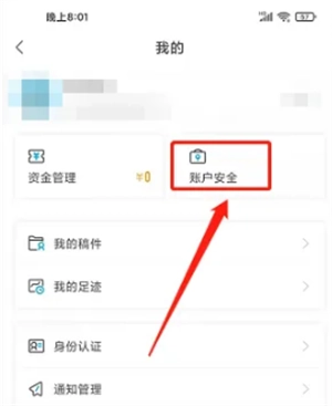 2. 来到“我的”界面,点击【账户安全】选项。