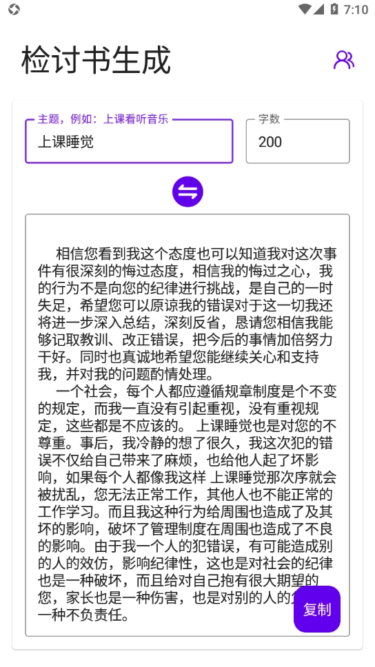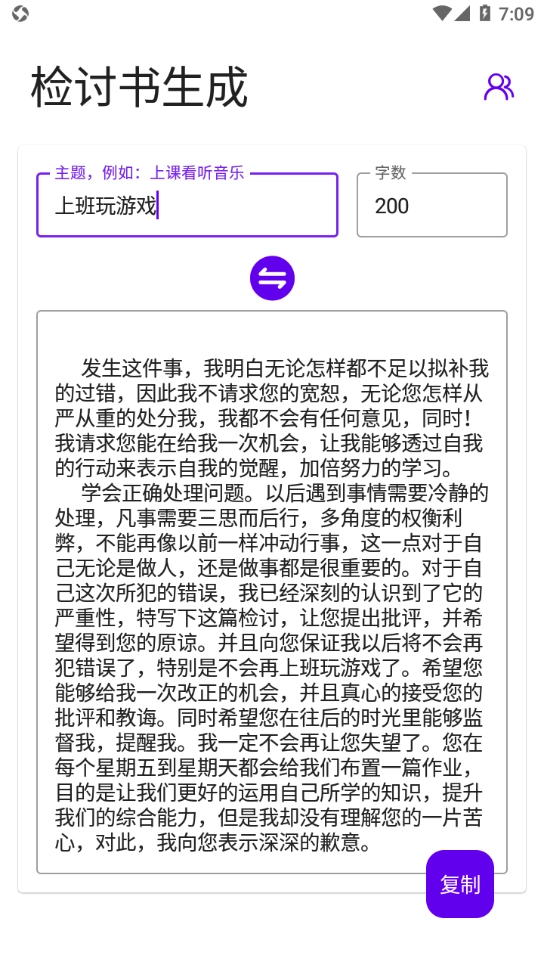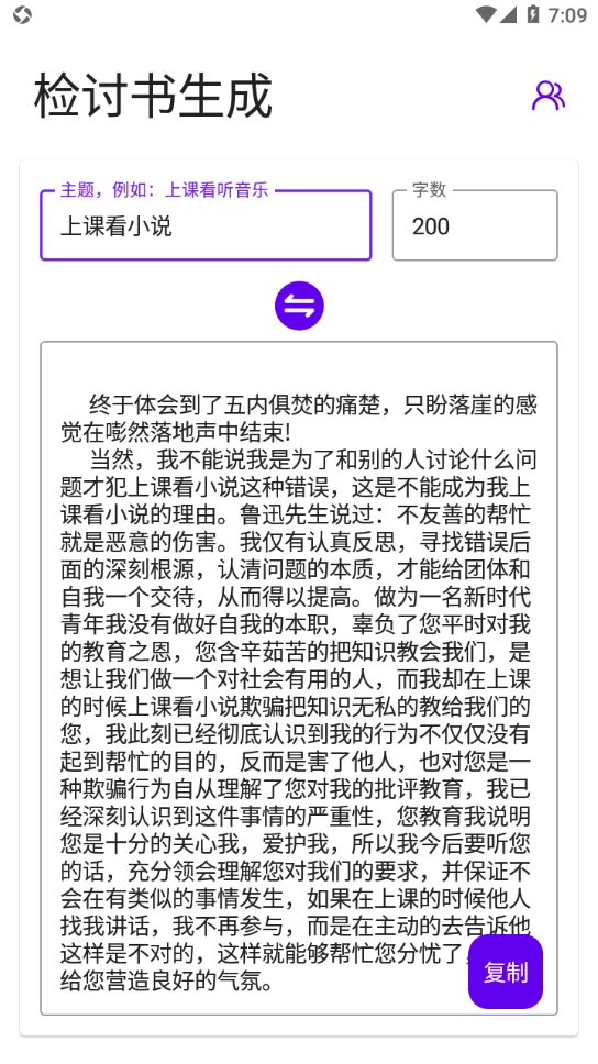 《写锤子检讨书》是一款专门用于生成手机检讨书的工具软件。借助它,用户能够一键快速生成各类检讨书。不仅如此,该软件还具备主题自定义、字数自定义等实用功能。感兴趣的朋友不妨尝试一下。